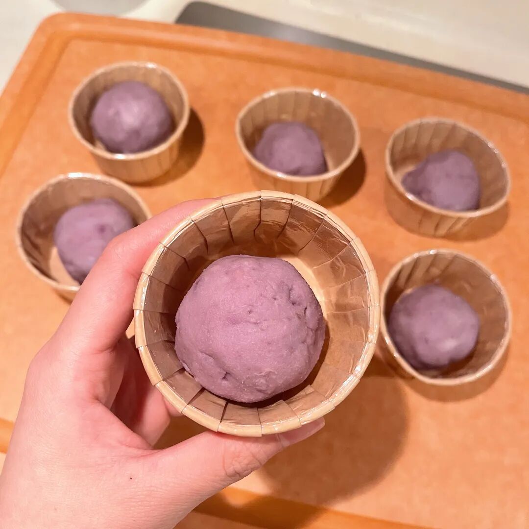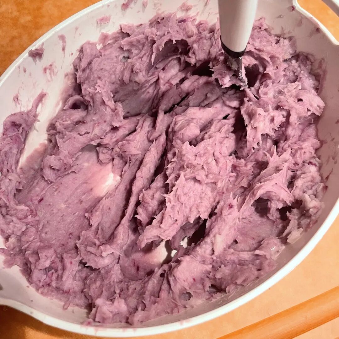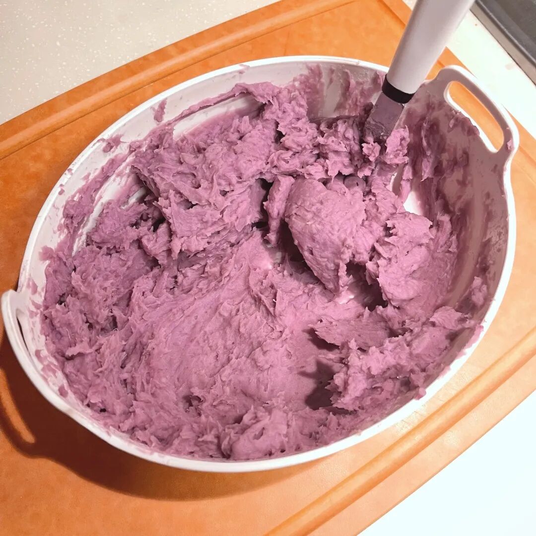ps. 要注意芋头一定要选粉一点的,不要再加牛奶或者水了,芋泥太湿不容易成型。如果太稀了可以加一点点淀粉或者面粉。