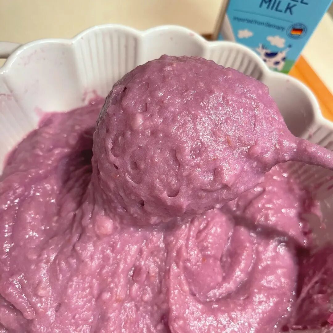 1、250g荔浦芋头、紫薯几块蒸熟加15g代糖搅拌均匀,可以再加点奶粉增加奶香。