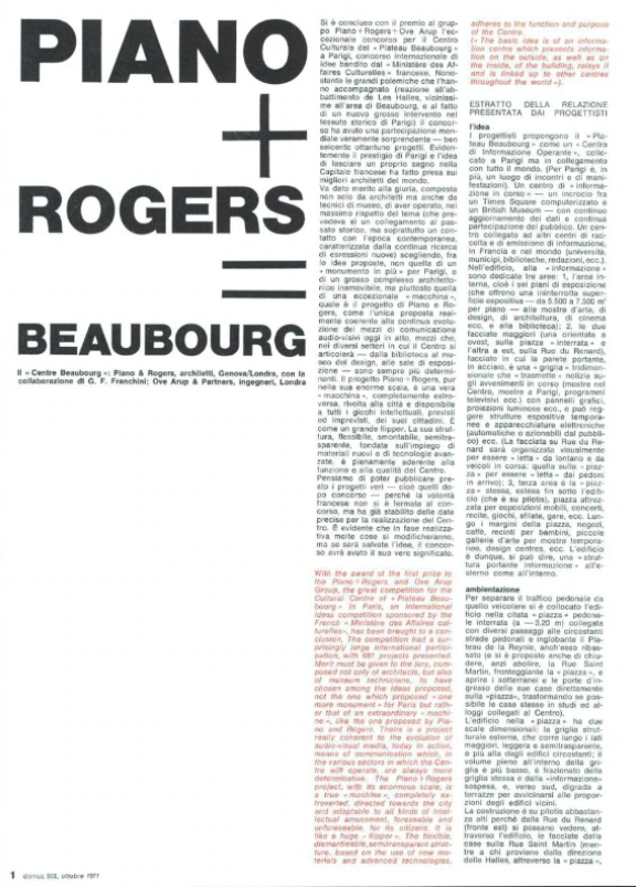在漫长的建设期中,有些人甚至想把建筑本身排除在建筑领域之外,1977年,蓬皮杜中心向城市和世界开放;同样,皮亚诺最终在两次公开对话中向公众敞开心扉,我们至今仍可以在其中发现很多关于项目的细节,但最重要的是关于那些构思它的人所看到的叙事视角: