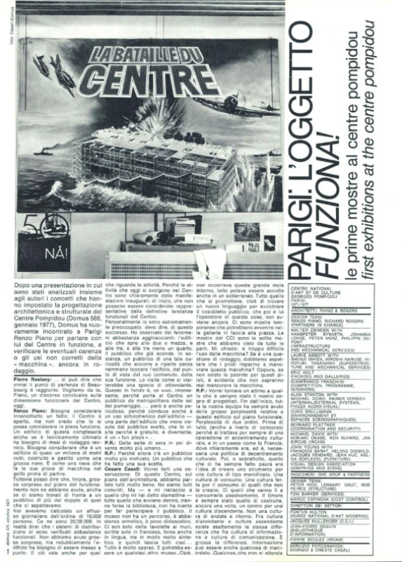 蓬皮杜中心的建筑师遇到了不止一次的要求他分享设计的所有方面,完全按照以上提出的顺序,以非常深刻的批判性洞察力将焦点问题从“谁是伦佐·皮亚诺?” 慢慢转移到“什么是建筑师?”