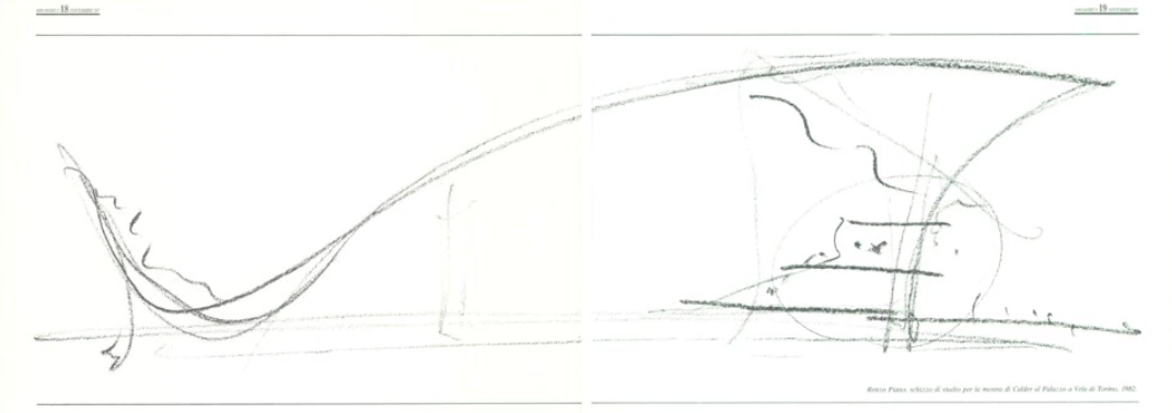 都灵贝拉宫的亚历山大·考尔德展览素描,1987年11月