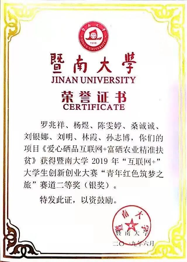 暨南大学2019年“互联网+”大学生创新创业大赛二等奖