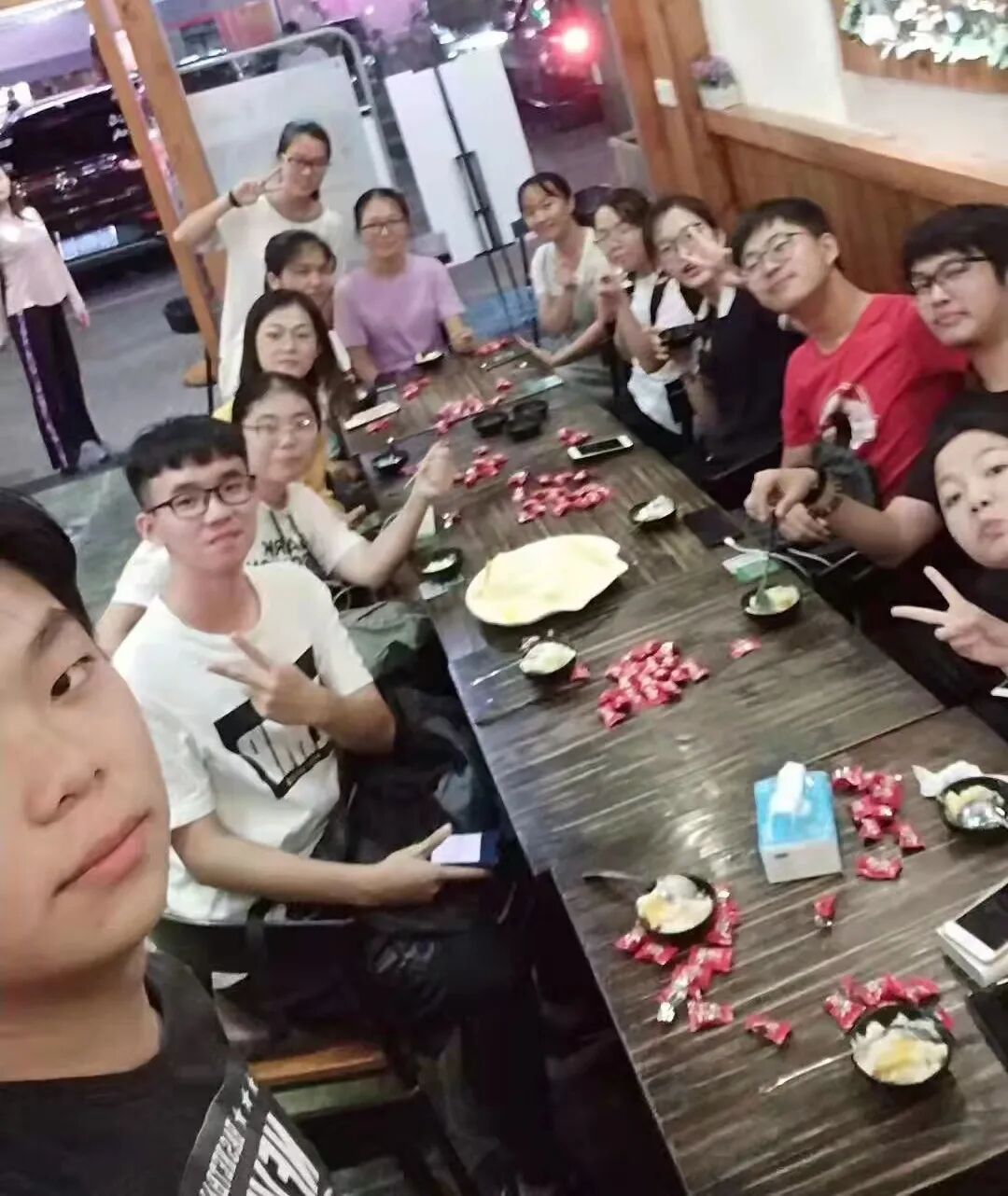 刘银娜参加班级团建与老师同学们合影