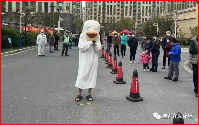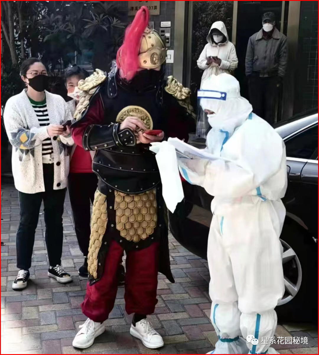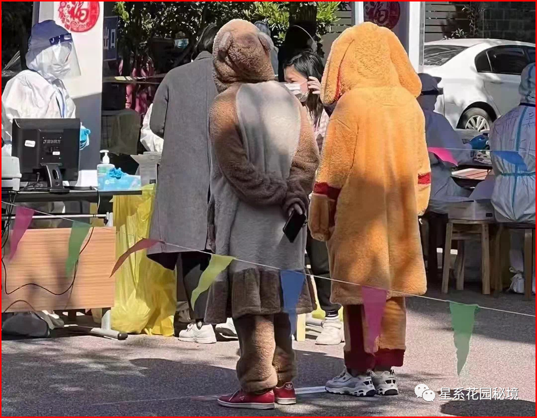 哦哟,竟然还出现了从遥远古代穿越来的红衣僵尸??它就这么默默地飘来,站在了查核酸队伍的后边……