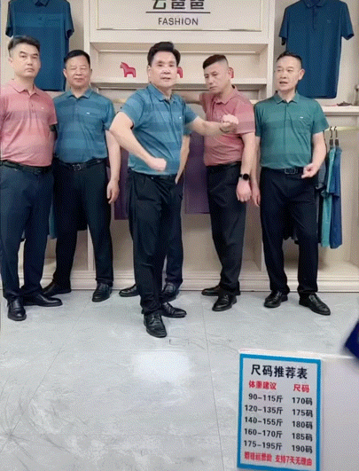 这个队形有“影流之主”内味了 你以为大叔们在整活,其实他们是“云爸爸品牌男装”(简称“云爸爸”)抖音直播间的男模,扫堂腿是证明裤子足够服贴,扎马步是检验裤裆轻易不崩线,比心是感谢直播间观众的点赞下单。 模特大叔们这般身体力行的敬业精神,让直播间观众产生深深的代入感。