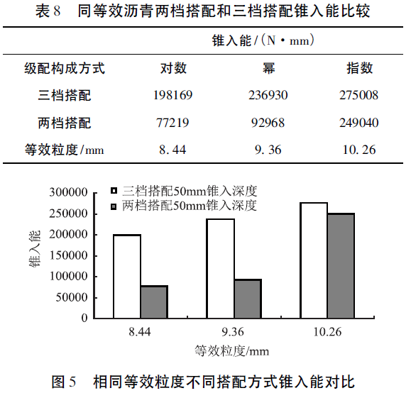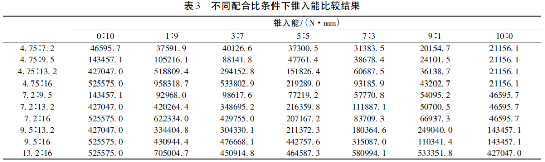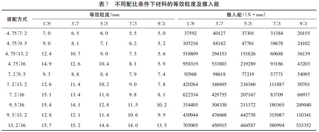 从试验结果看,总体上来说,锥入能最大的影响因素是集料的粒径,或者说主导粒径的大小,但同时,在主导粒径较大的时候,对于与之搭配的集料粒径有优劣之分。