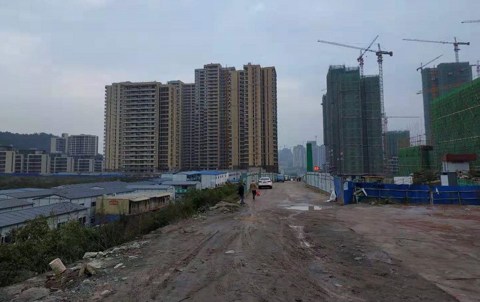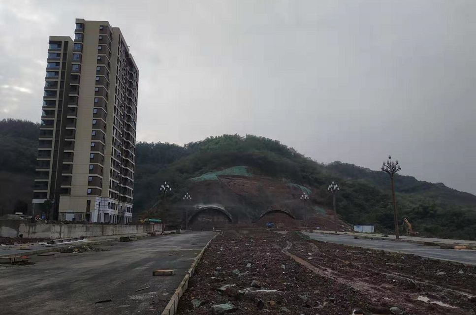 甘悦大道另一头通往悦来沙井湾立交,目前隧道已基本打通,左侧建筑为公园九里一期高层;