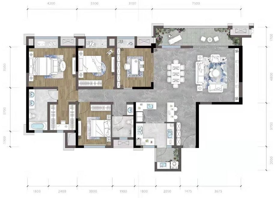 正看中央公园的A户型,建面180平,套内147平;
