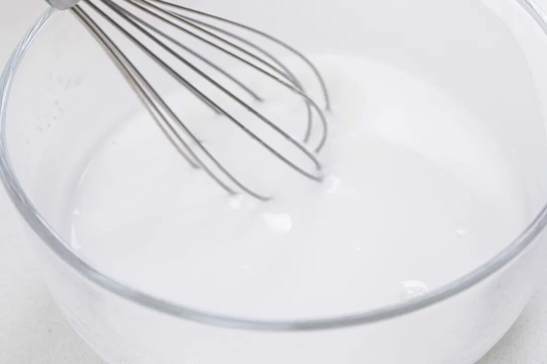 2、用手动打蛋器混合均匀,制作成淀粉浆。