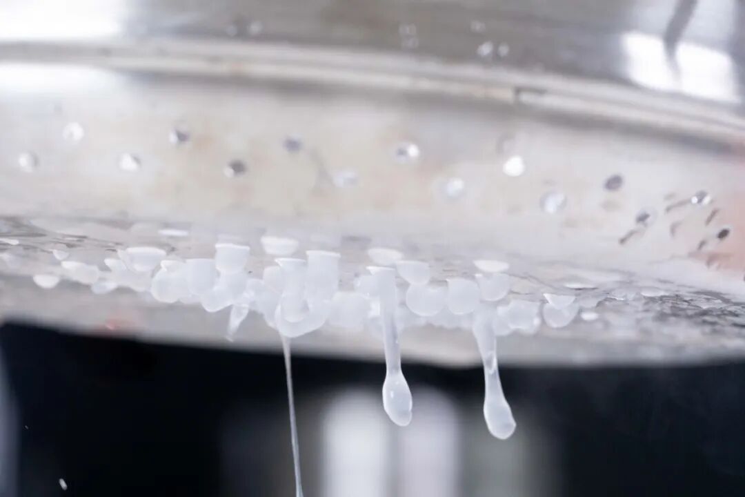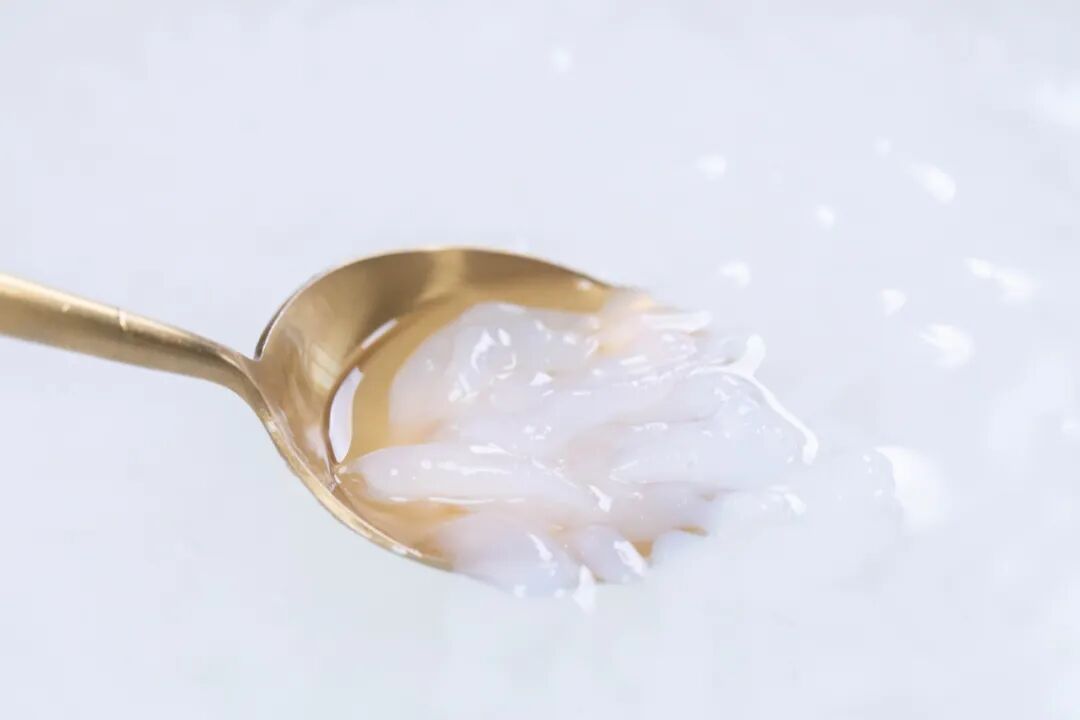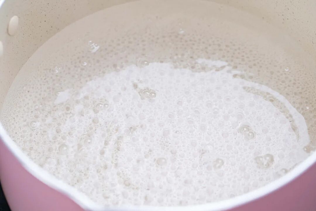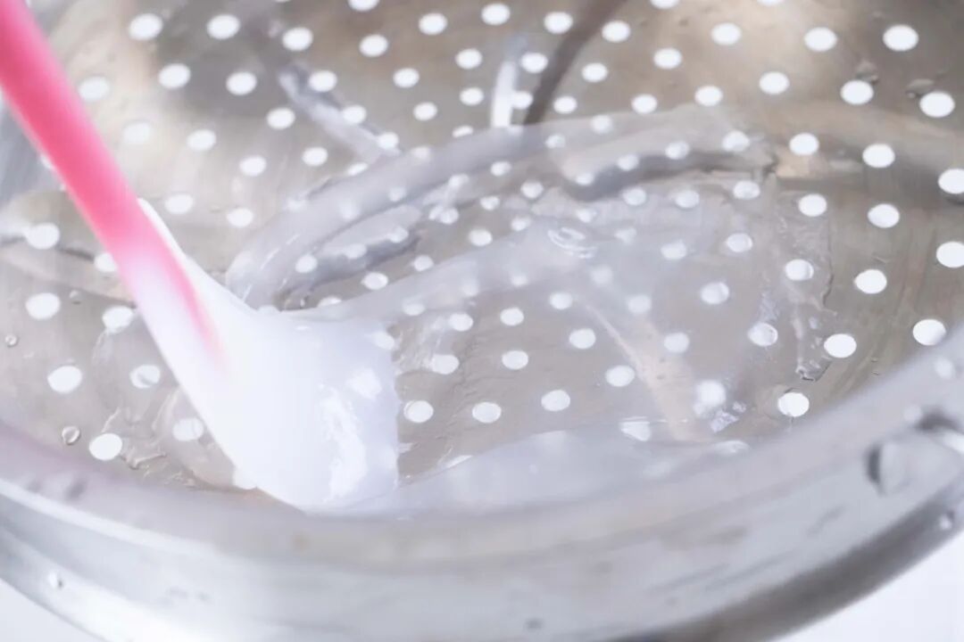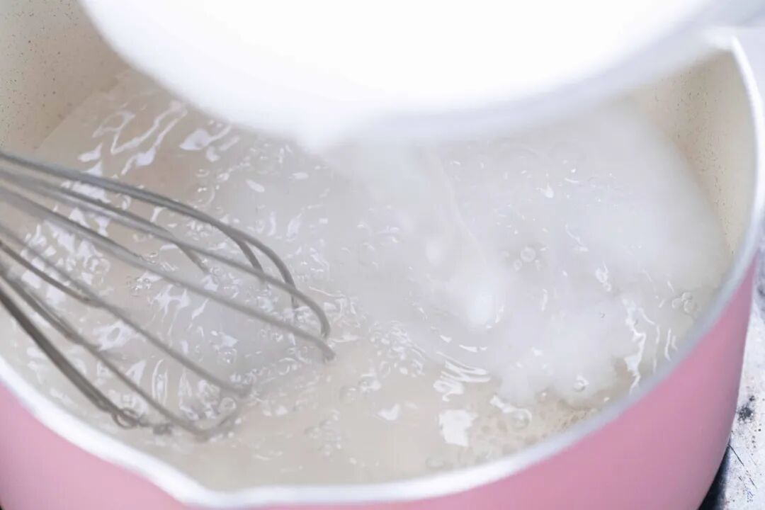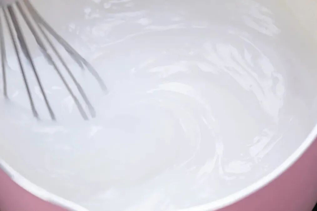 5、整个状态为黏稠半透明糊浆时,马上关火。