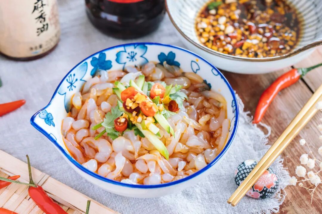 今天教大家的这碗面有点特别,因为是用漏勺漏出来的,形状像是小鱼所以称之为漏鱼鱼,吃起来口感爽滑,犹如一只只透明的小精灵在嘴里跳动。过了冰水的漏鱼鱼清清凉,加上特调的酱汁酸辣爽口,越吃越爽,三碗都不嫌多!