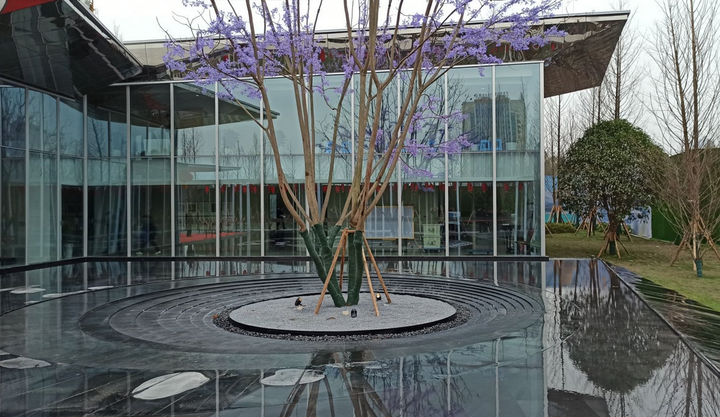 边走边看了下售楼部的示范区,绿化水景看起来还不错;