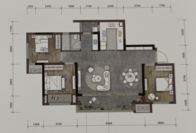 套内71平,建面87平的三房;