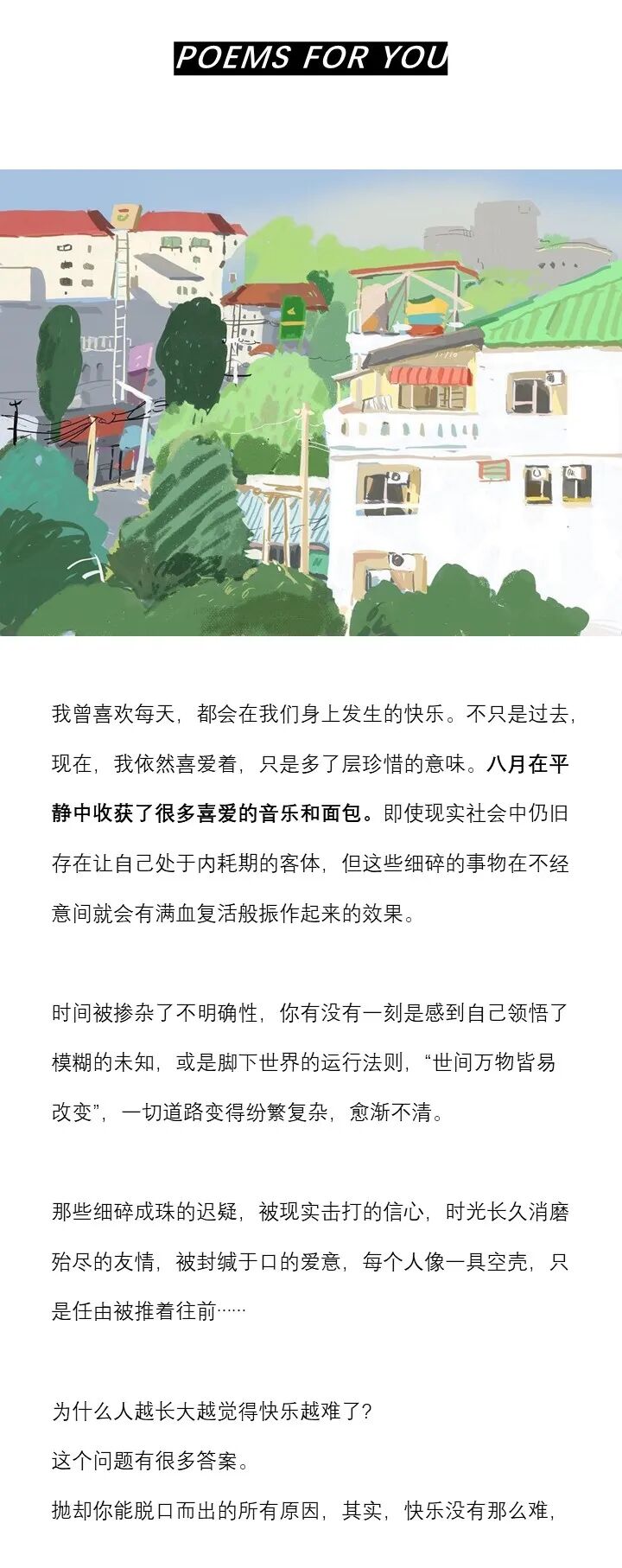 这篇关于我曾喜欢每天 都会在我们身上发生的快乐的文章就介绍到这了,希望我们推荐的答案对大家有所帮助,也希望大家多多支持!