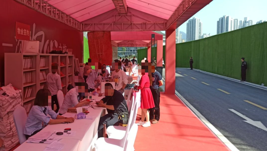 一到附近,就看到了业主们正在接房。不得不说,小区大门还是相当气派的;