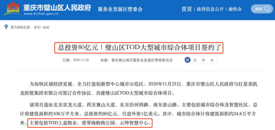 我查了一些官方信息,发现璧山这个TOD项目还挺受重视嘛,总投资80亿元~