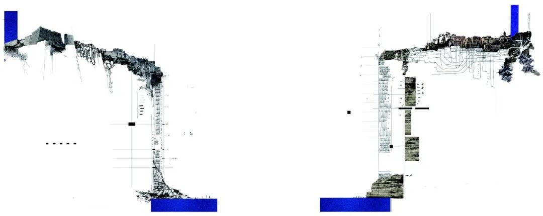 以书中的《博尼法乔的记忆》为例,在这两张海岸悬崖景观剖面中,绘者强调了这种特殊的人类栖居地的本质叙事:对海陆边界的探索。通过在悬崖上添加刻度,绘者呈现了一种更真实的见解:阶梯本身就是一种依托人体的度量方式,通过其与人体——无论是定居者、入侵者,还是现今的游客——之间的关系,将多版本历史叙事与城市地质景观联系在了一起。