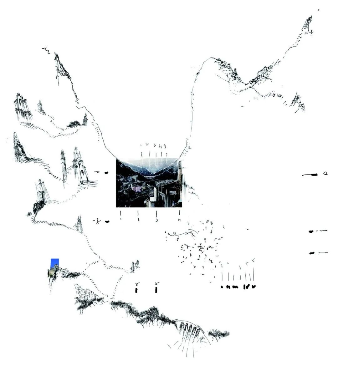 在书中,作者将自己的“语言绘图”和“漂亮的效果图”明确地划清了界限。莫拉比托称,他的记忆图像由“一种精确的语法和句法组成,可以通过线条的性质来识别”。绘者以其视觉形式的一贯自主性,发展出了一种对于个体景观记忆与心智的图像解读,表达了对场地可能性的想象,这也是本书的根本所在。莫拉比托明确地将他的绘画方法与写作方法类比,在其作品中探究了生活景观的深层结构:既包括意义的积淀与再生,也包括作品在被接受过程中所传递的叙事。