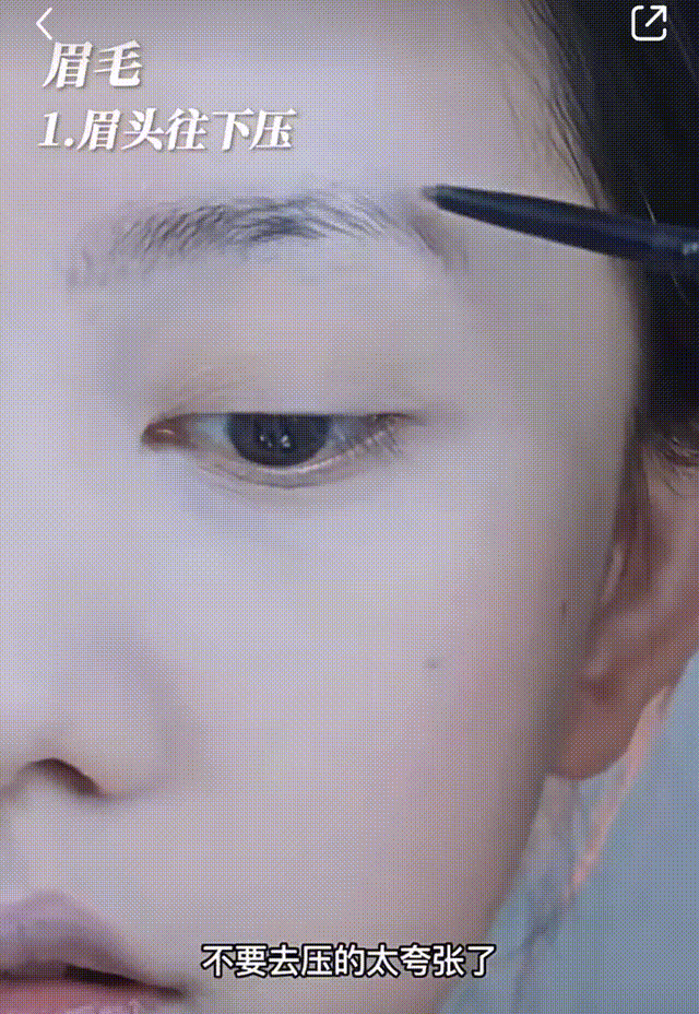 如果眉毛和眼睛距离过远的姐妹,也可以将眉毛化得向下压。