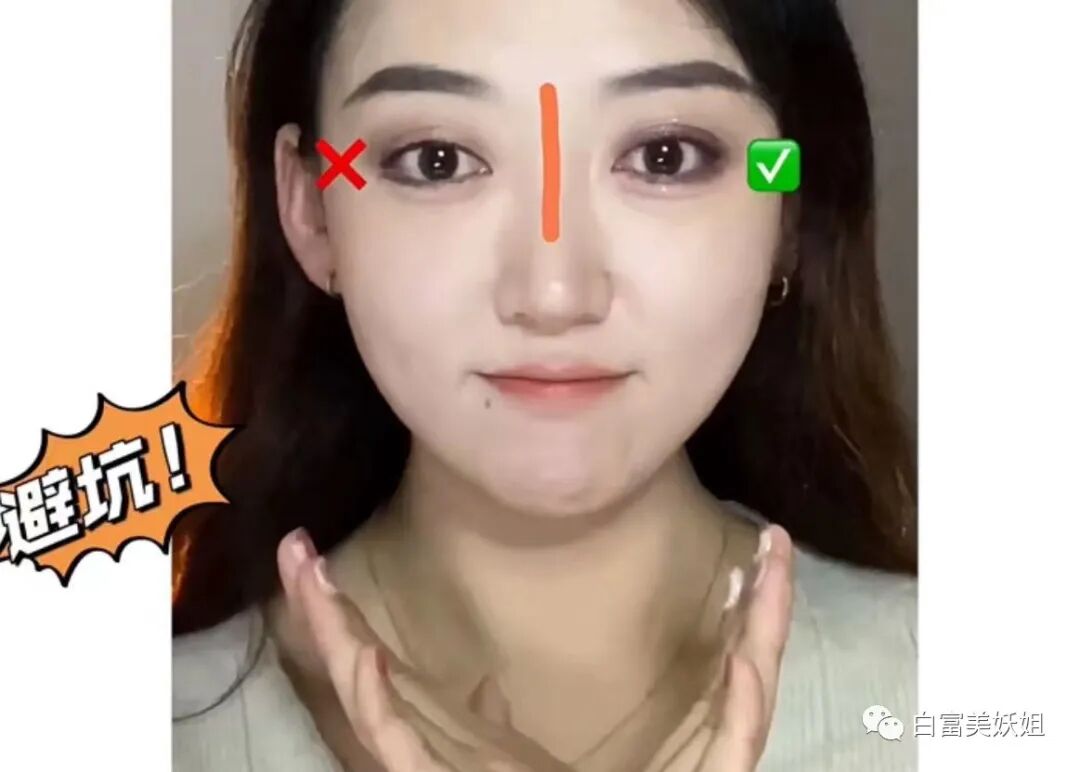 而在眼睛正中央的上方,一定要尤其着重涂抹。