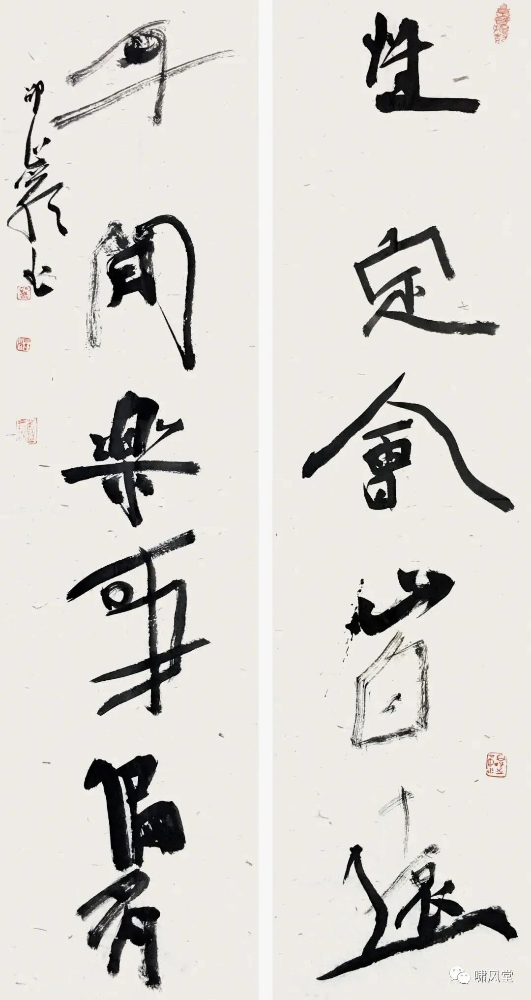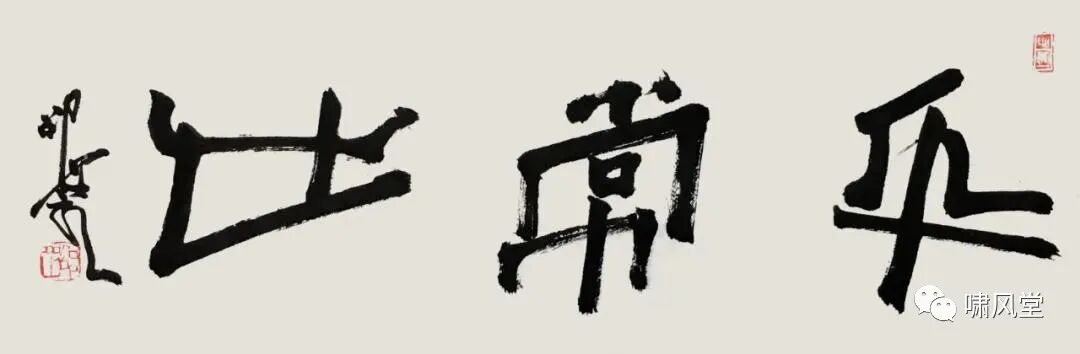 书法创作与创新的问题,我觉得书法家和西方艺术家不同之处在于你必须热爱汉字,了解汉字的产生、发展、演变,临摹古代碑帖,掌握传统书法中各家、各派、各时代书风的特征,熟练操控毛笔书写过程中的运笔技巧,掌握汉字间架结构与连接的变数,意在笔先,同时还得意存笔后,貌似心手双忘,实则精骛八极、心游万仞又随机应变、出奇制胜。书法创作、创新的诸多理论,古人书论早已涉及过,无需从西方艺术理论中找由头、挑词汇。清代书法家邓石如曰:“字画疏处可以走马,密处不使透风,常计白当黑,奇趣乃出。”如果我们将一个汉字写得大而放,几个笔画连的区域写的密不透风,而某些笔画所占面积比例大,且疏可走马,想象一下,这幅作品仅从结构处理上,就是一幅很现代的作品,疏密的对比关系越大,视觉张力、冲击力就越大。人们便会调动已有的视觉经验进行想象,作品的内涵与美学价值随之由传统过渡到现代。而孙过庭《书谱》论结体与笔画、点画谈到“违而不犯、和而不同”,《老子》“反者道之动”均是揭示形式美的奥秘,对立而形成和谐,相反而相成。它能帮助我们掌握书法形式美的规律,甚至郭若虚《图画见闻志》里讲“本自心愿想成迹形”,刘熙载《艺概·赋概》里的“凭虚构象”,都可作为现代书法创作的提示和理论依据。