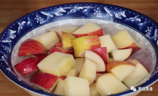 第一步:首先准备适量的苹果,然后先把苹果放在大碗里面,跟着就往大碗里面倒入适量的清水,把苹果打湿。接着就在苹果的表面抹上适量的食盐,最后把苹果的表面搓洗一遍,食盐有杀菌消毒的作用。