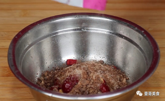 第四步:接下来把清洗干净的红枣和枸杞放在干净的小碗中,然后就用一把干净的剪刀,把红枣剪成小瓣,去掉红枣中间的果核。最后把红枣全部剪好之后,就往小碗中加入适量的红糖备用。