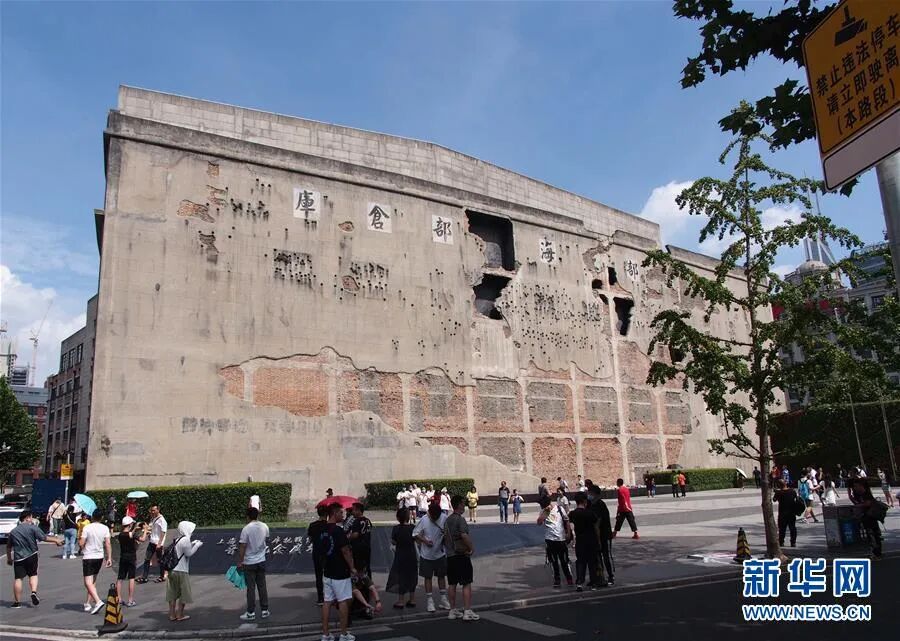 ▲ 8月25日拍摄的上海四行仓库西墙,如今这里也是四行仓库抗战纪念馆向公众展示的重要组成部分。新华社记者 任珑 摄