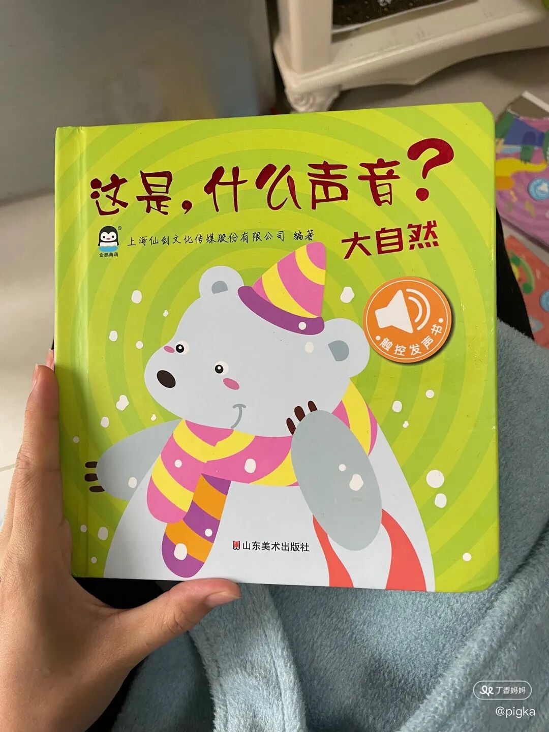 除了绘本她还喜欢发声图书,《听这是什么声音》也是她经常看的,会模仿上面发出的声音,比如风声 「呼」,打喷嚏「啊嘁」,鸭子叫声「嘎嘎」 等。