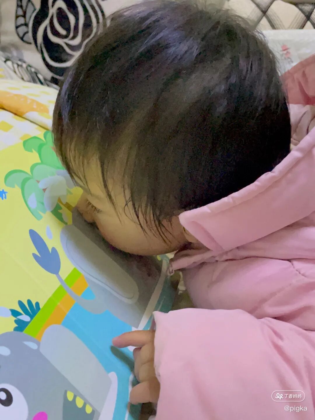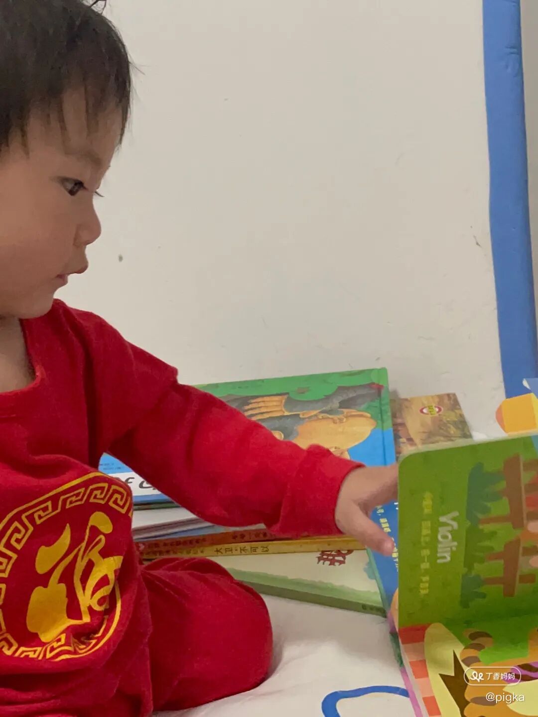 相信每个宝宝睡觉前都要经历一番战斗,我家这个也不例外。她从四个多月开始自主入睡,固定播放一首音乐来让她平静,酝酿睡意的。后面我给她讲绘本故事了,她就能在我讲故事的时候平复心情,基本两个故事之后她的情绪就会很稳定了,接着她自己翻一翻就会睡着,特别的省心!有时候她也会哭着想出去玩,我会讲《大卫不可以》这本书:「大卫很晚了还在床上跳呀跳不睡觉,妈妈跟他说‘大卫,快点睡觉啦!」 我们陈陈现在也要睡觉哦,她就会乖乖地睡觉。早上她起得早,我还想赖会儿床的时候也会把书拿给她让她自己看会儿,我继续眯一下~