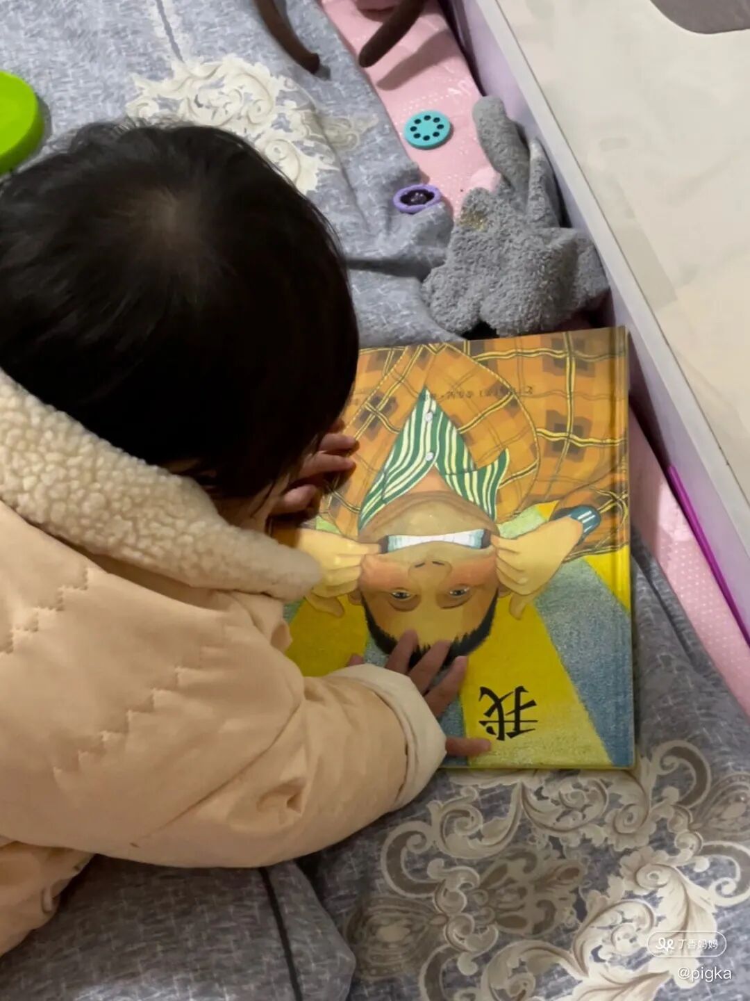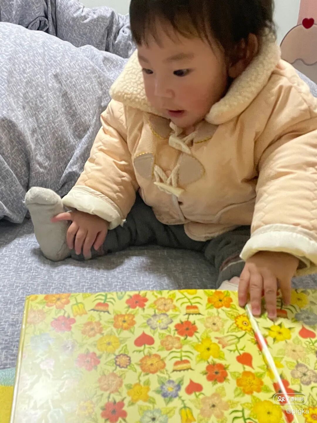 我家陈陈读绘本的时间也不早,一岁了才给她买的绘本书,起初是看着群里的宝妈们分享自己宝宝看书时的样子,我才发现我把这方面忽视了,于是赶紧下单绘本!读绘本的这段时间,让我感慨,啊,为什么我没有早点给她买绘本呢!