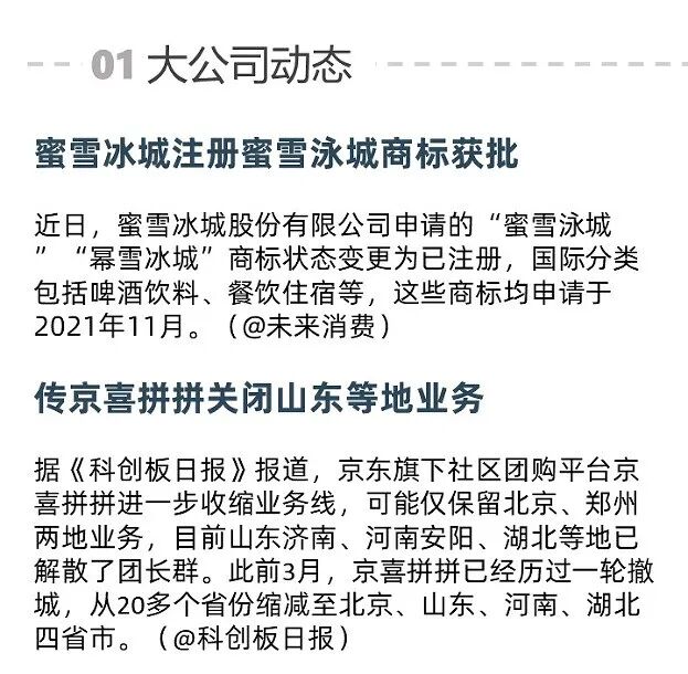 作为互联网创投数据服务商,IT 桔子持续关注新消费行业,推出新消费周报栏目。周报将从大公司动态、行业热点、投融资概览和行业观点等多个角度剖析新消费行业的最新变化,为新消费行业的创业投资提供最新行业动态。
