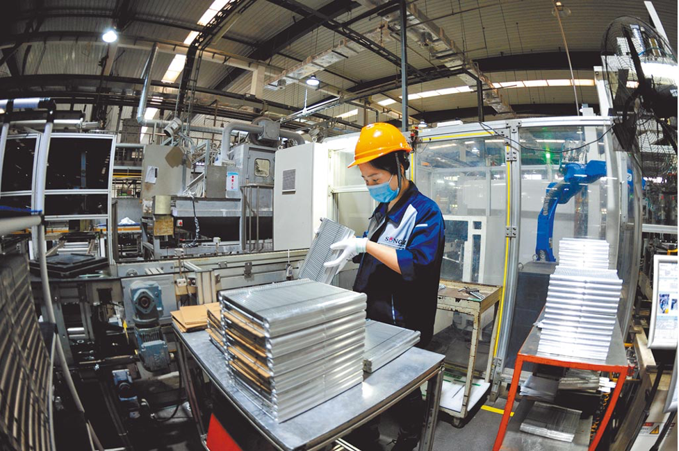 ▎图/上海为加速复工复产,拟定发布第二批1188家「白名单」企业。图为上海一家汽车空调公司的员工检查产品。