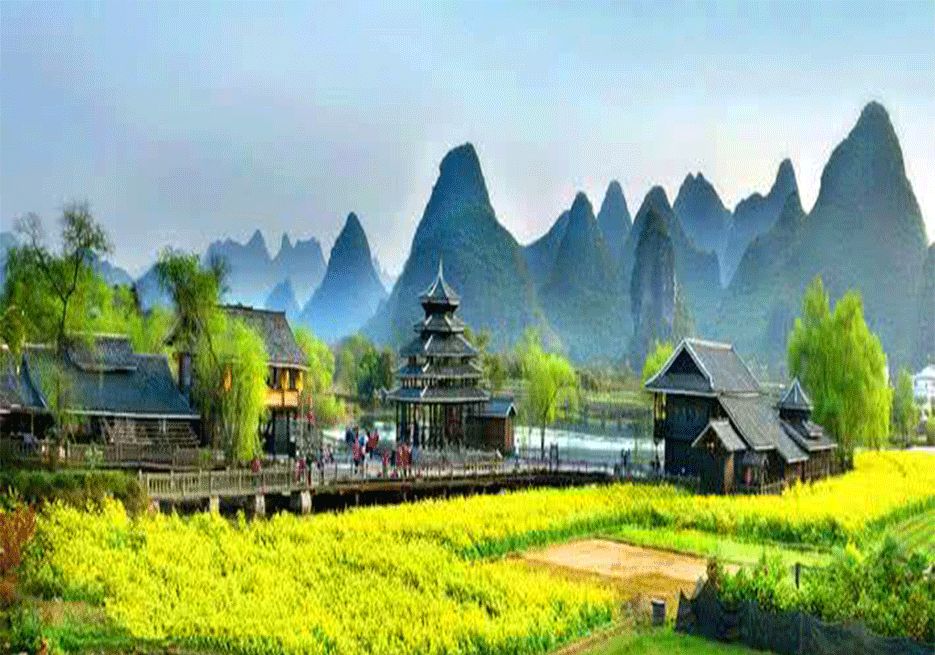 山川溪畔人家,媚容妩秀芳华。一幅云霞锦缎,丹青名满天涯。