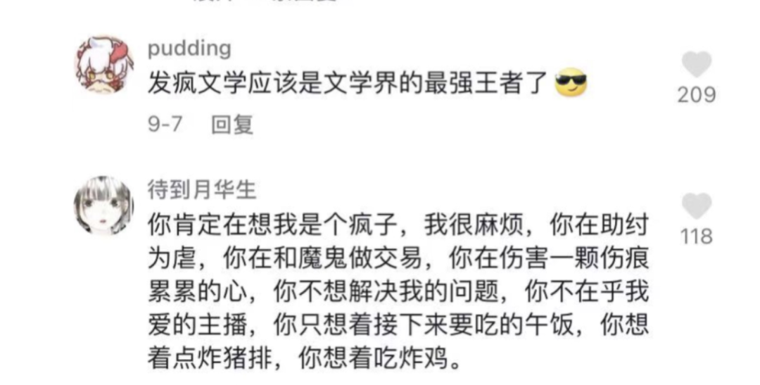 将词汇和语句没有逻辑的搭配、组合在一起,再加上强烈又丰满的情绪,达到一种疯癫式和娱乐式输出的野生文学,其实就是一种文字游戏。