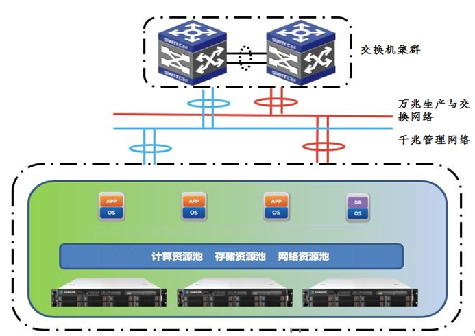 3. 管理网络(管理 X86 物理服务器节点)可采用双链路千兆以太网络,主要用于节点管理。建议单独配置 1 块千兆网卡,实现管理网络与业务网络、存储网络分离。可以最大限度保证管理的灵活性和安全性。