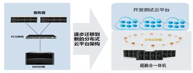 1. 整合计算、存储能力,其计算、存储垂直融合架构,为开发测试云运行提供高性能高可靠的业务平台,新业务系统上线只需要几十分钟就可以完成。