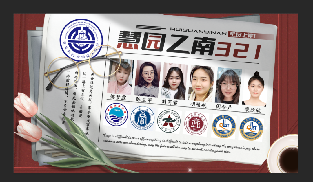 近日,青岛科技大学高分子科学与工程学院甲南308宿舍六位同学实现了研究生全员上岸。其中,舍长江雪同学保送至浙江大学,刘欣同学保送至大连理工大学,盛楠同学考入四川大学,陈立彤同学考入宁波大学,田雨同学考入常州大学,罗淑芳同学考取青岛科技大学继续学习深造。