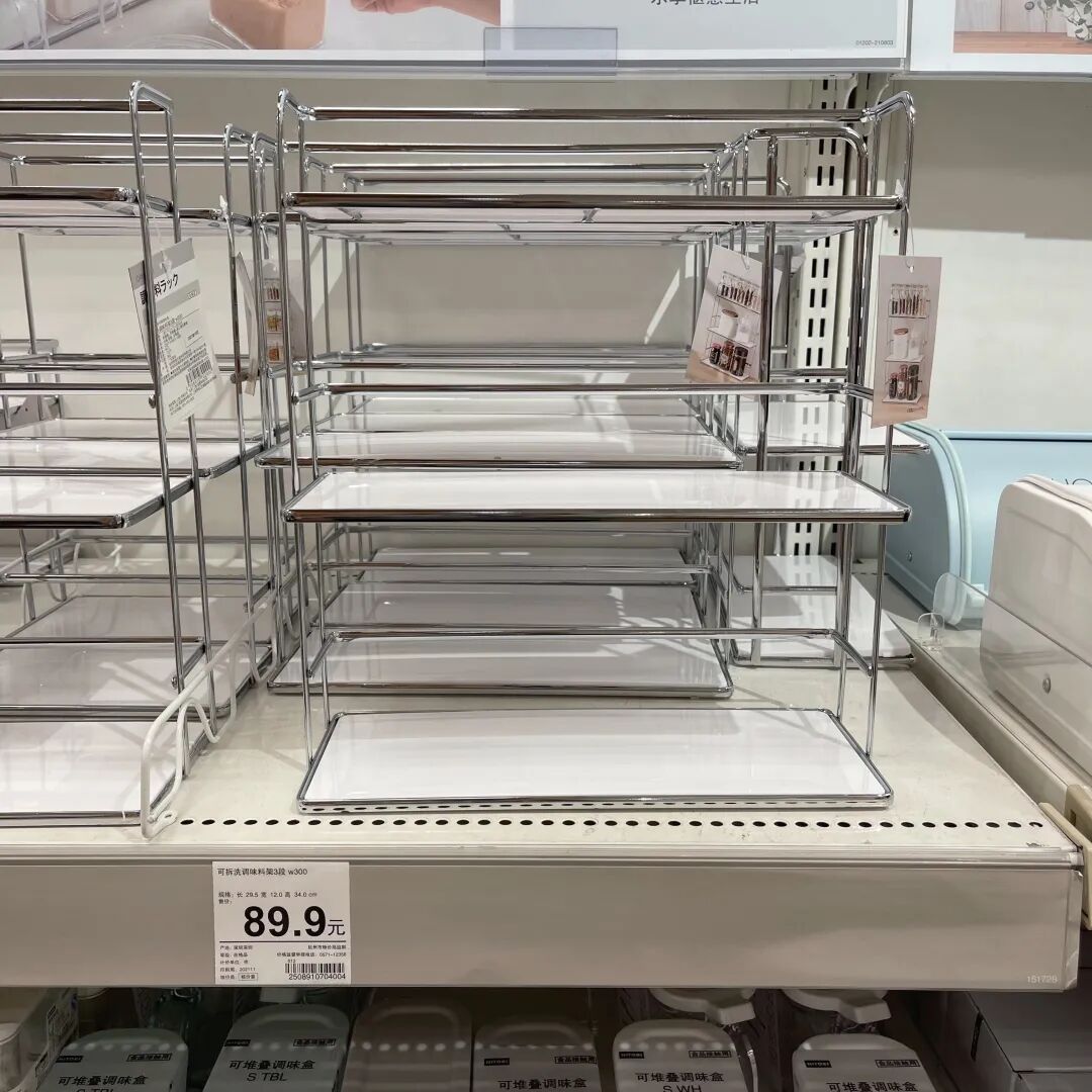 厨房置物收纳架,这个真的很实用了,各种调味料瓶瓶罐罐都可以放起来,台面一下子就干净了。