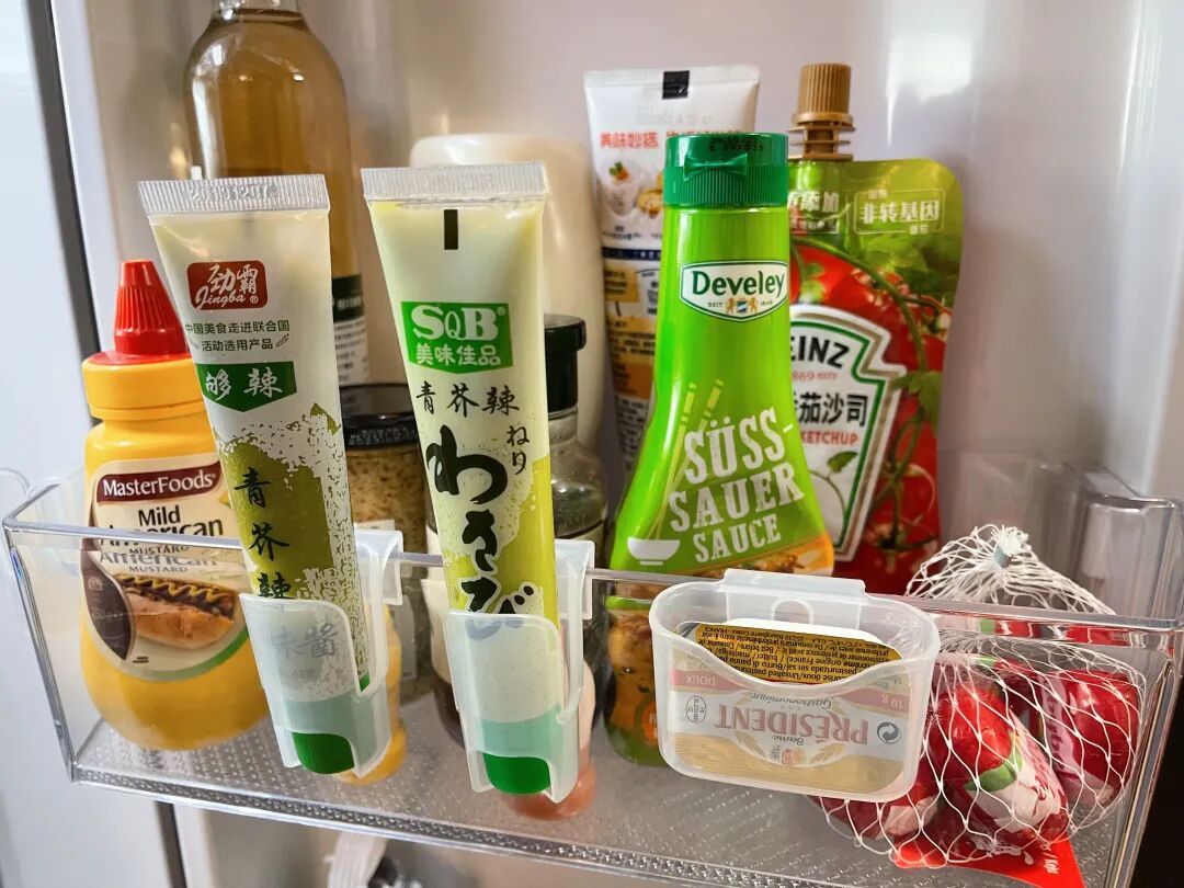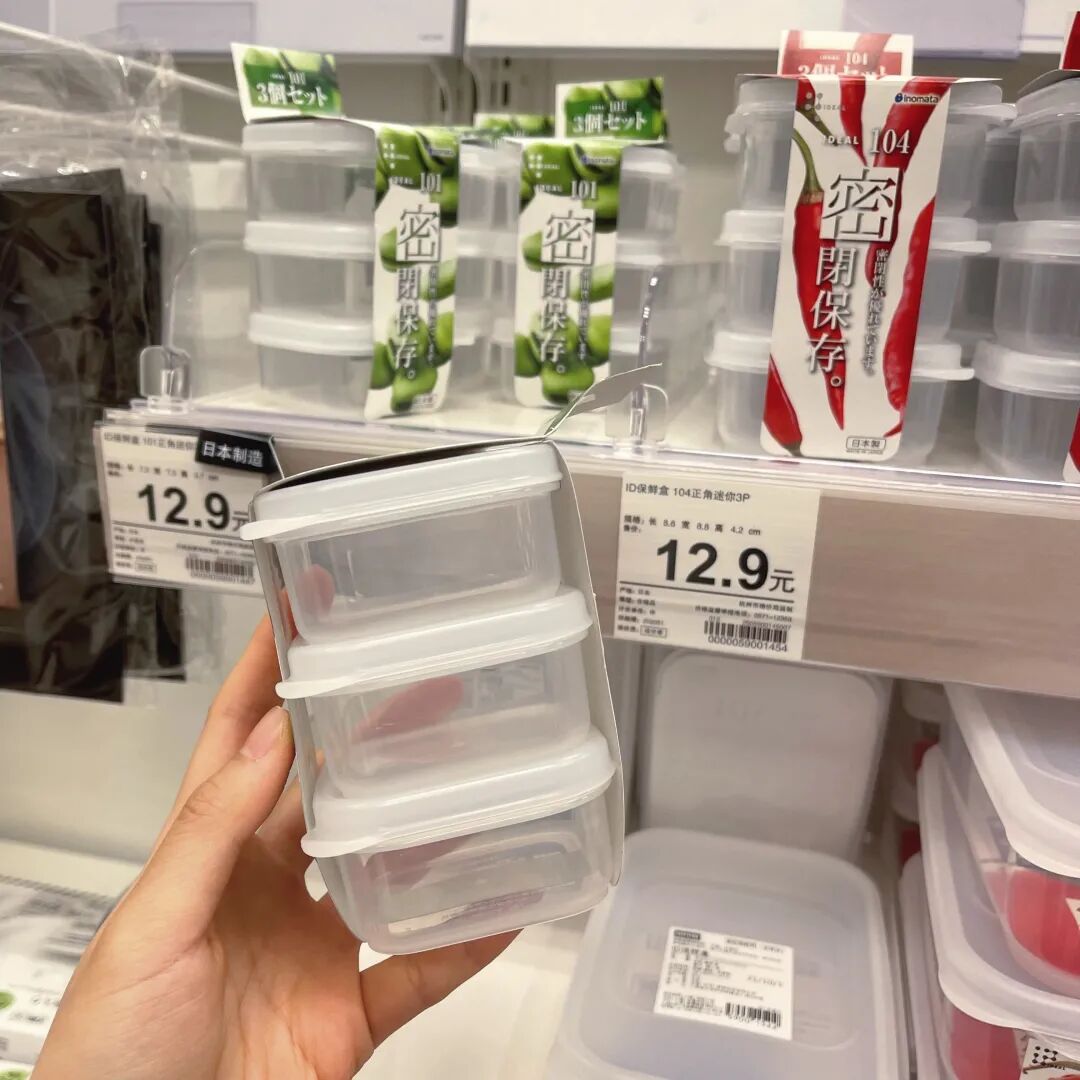 三个一组的保鲜盒,可以拿来放酱料、葱姜蒜末小米辣这些,放冰箱就不会蹿味了。