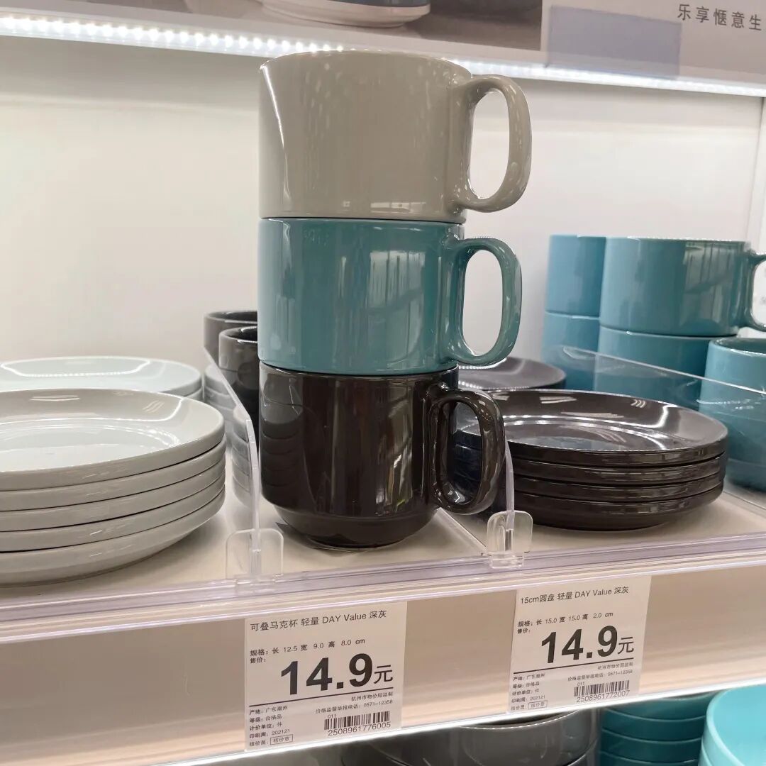 好喜欢这个马克杯,340ml的容量,微波炉、洗碗机适用,一个才不到15块钱,几个颜色一起入一套,摆在柜子里颜值很高。