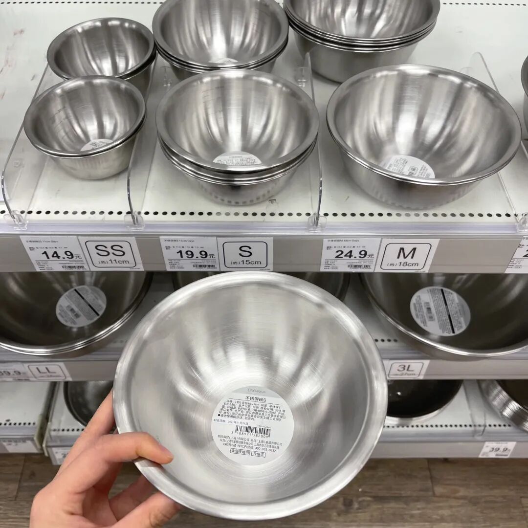 做烘焙很好用,小碗用来装鸡蛋、糖、面粉这些,大的用来打鸡蛋,干干净净分量也轻。