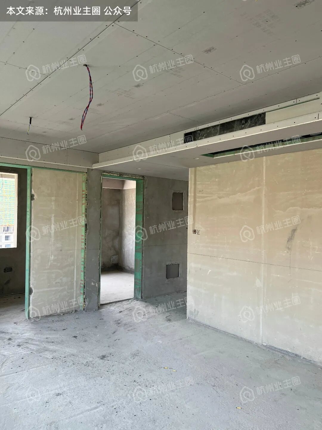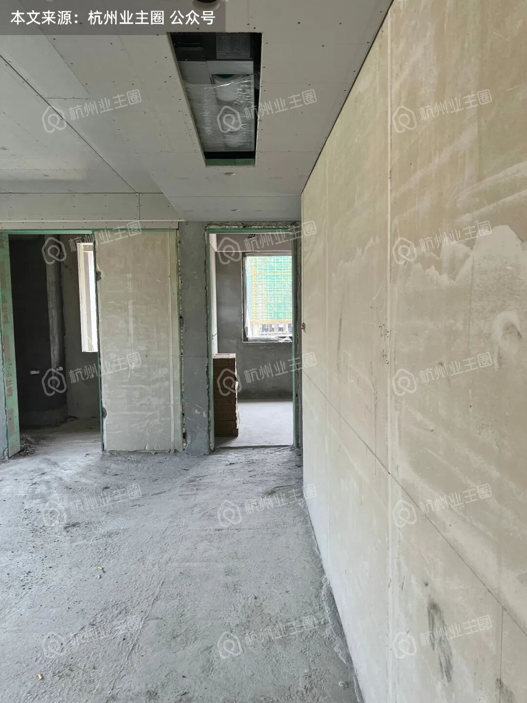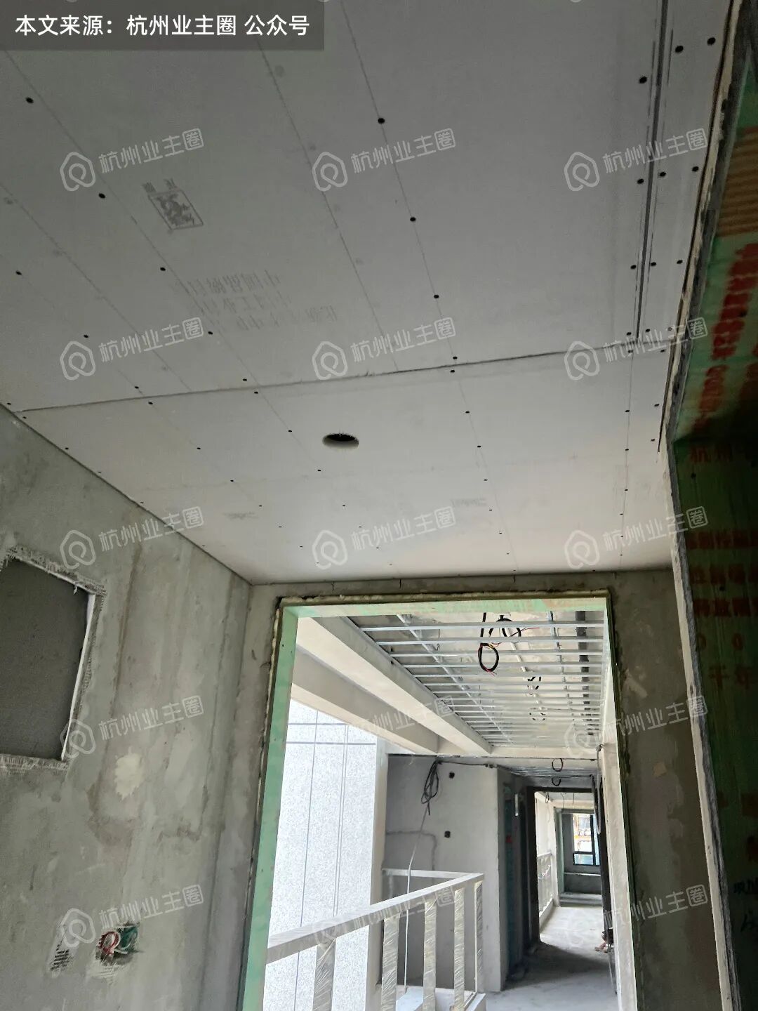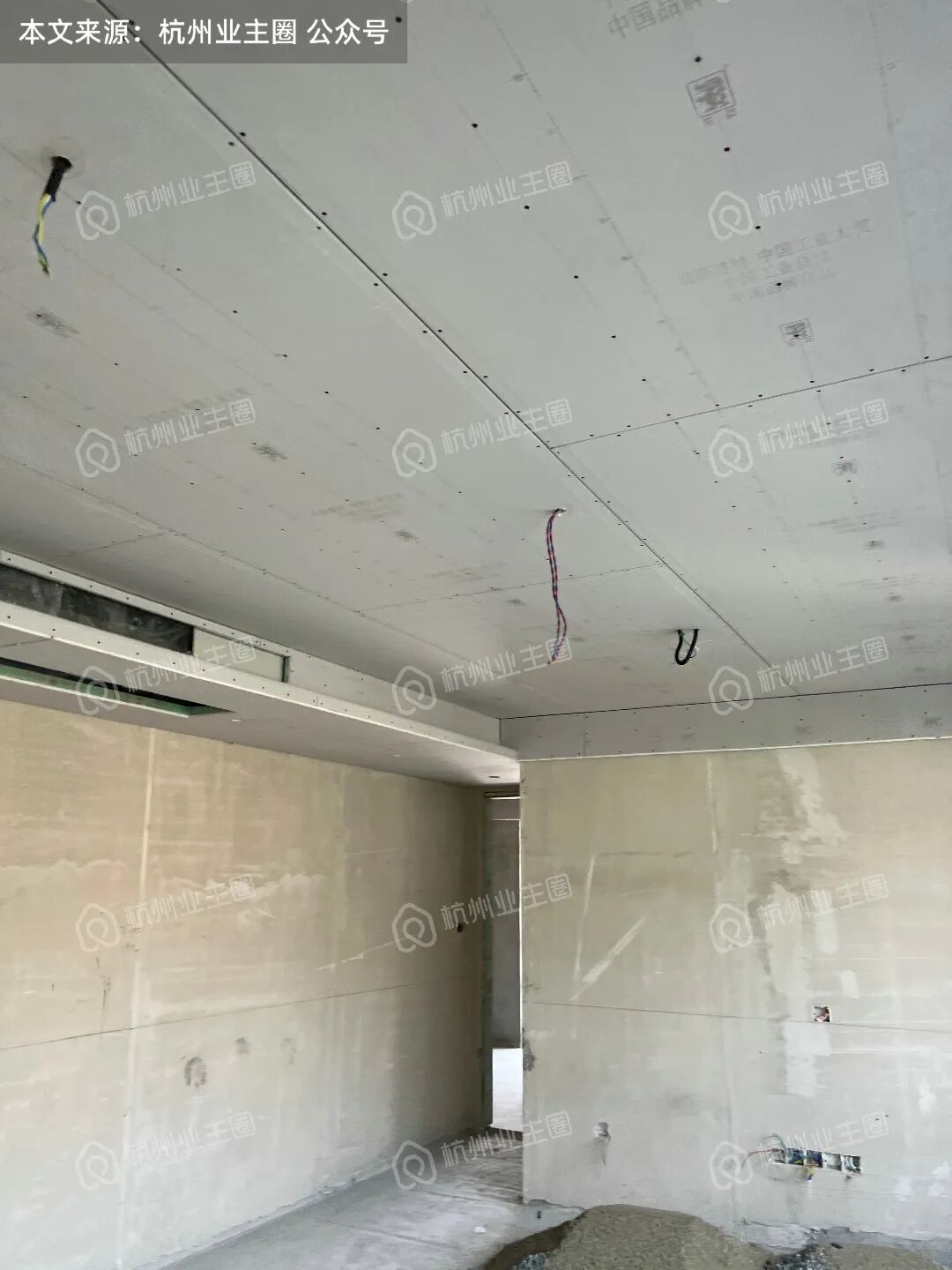 客餐厅、卧室区域顶面石膏板已搭建;