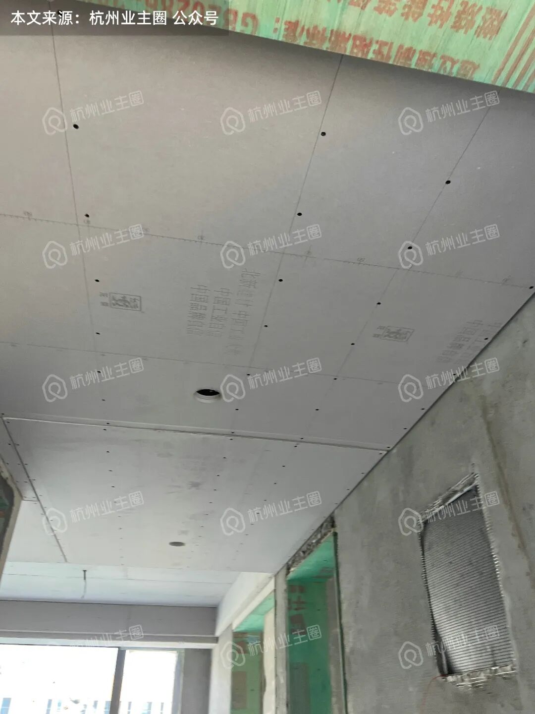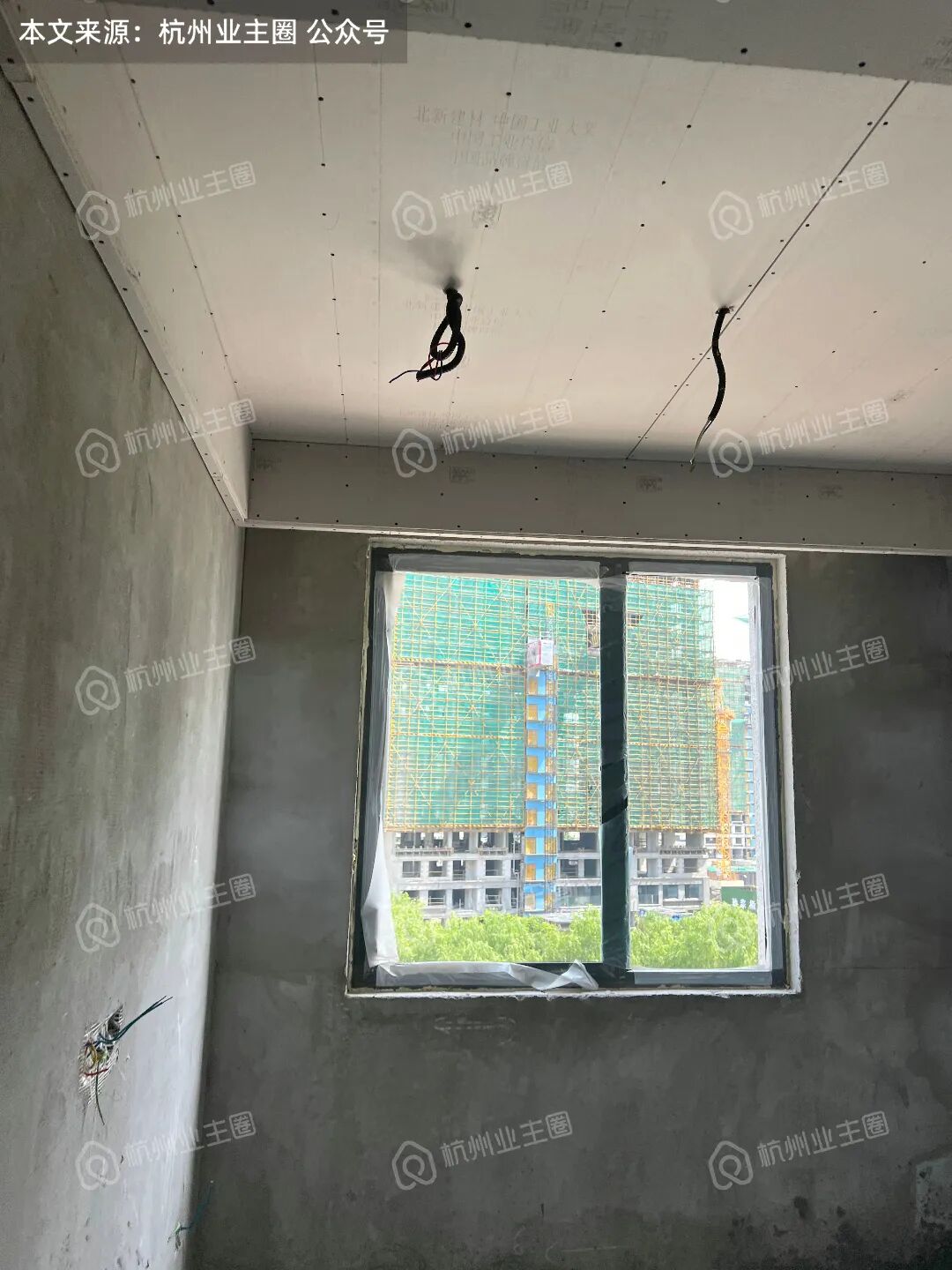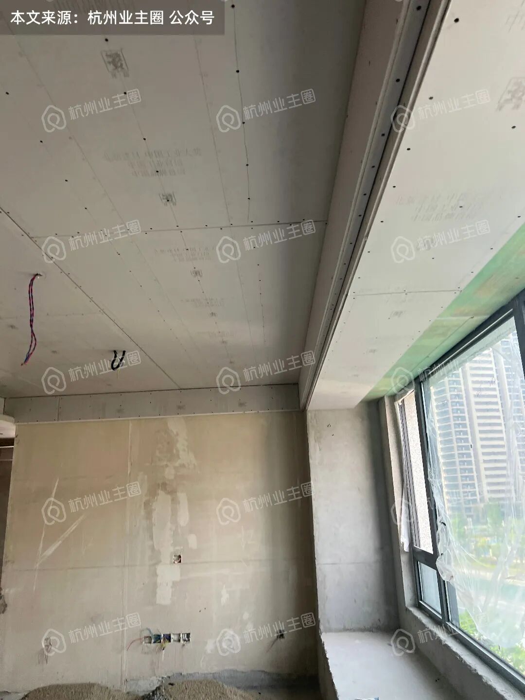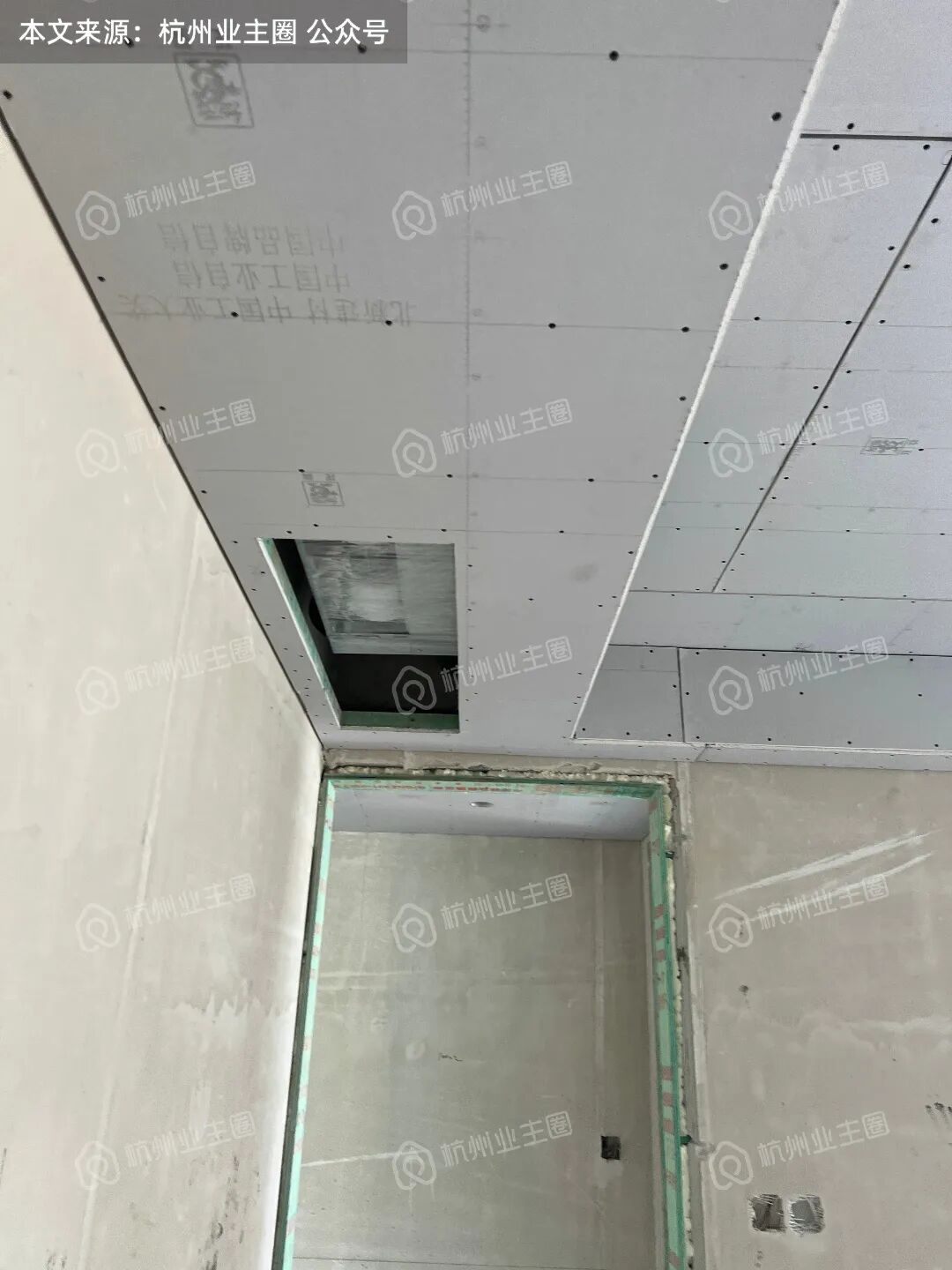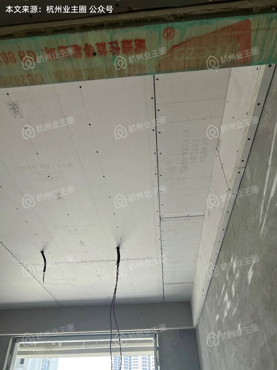 客餐厅、卧室区域顶面石膏板已搭建;