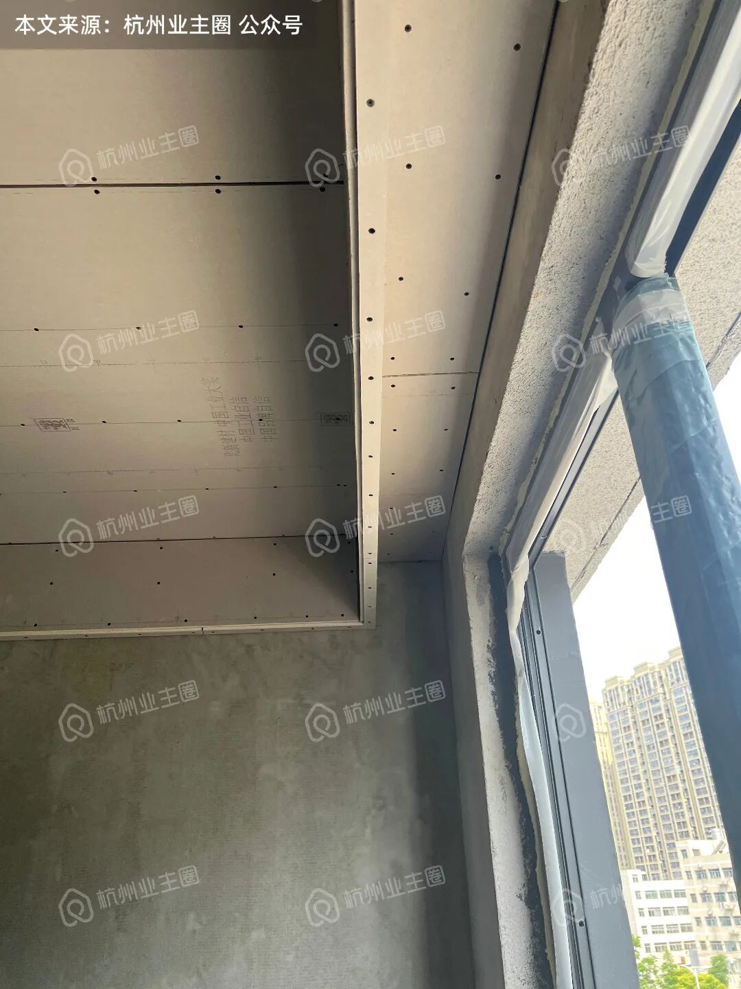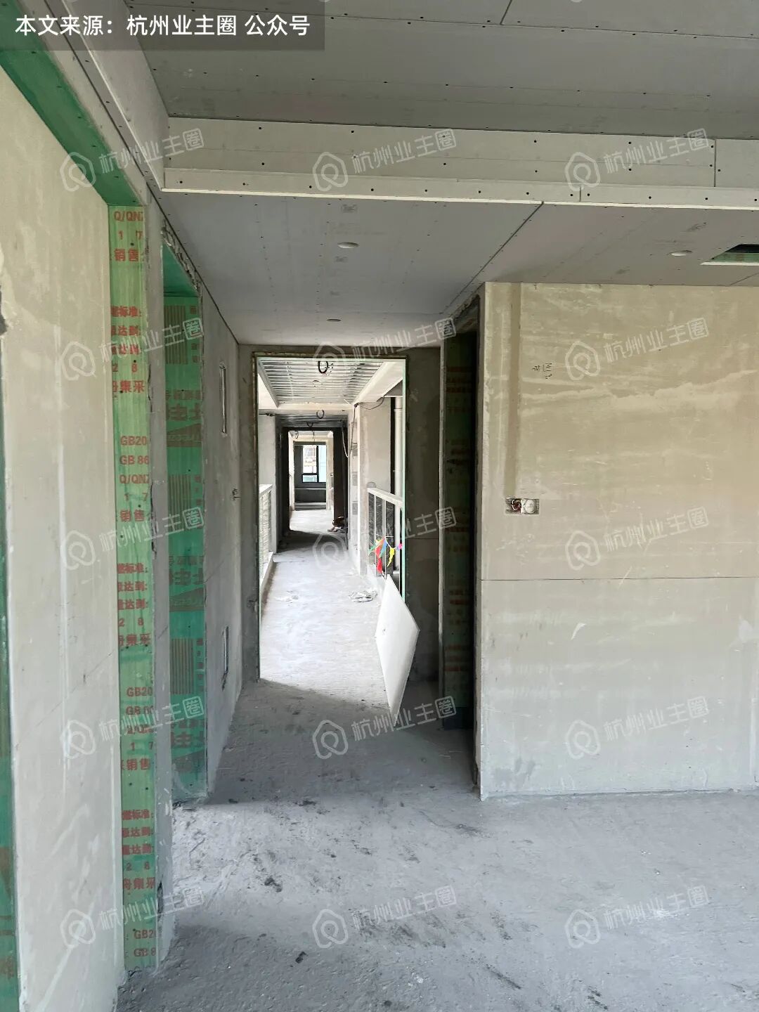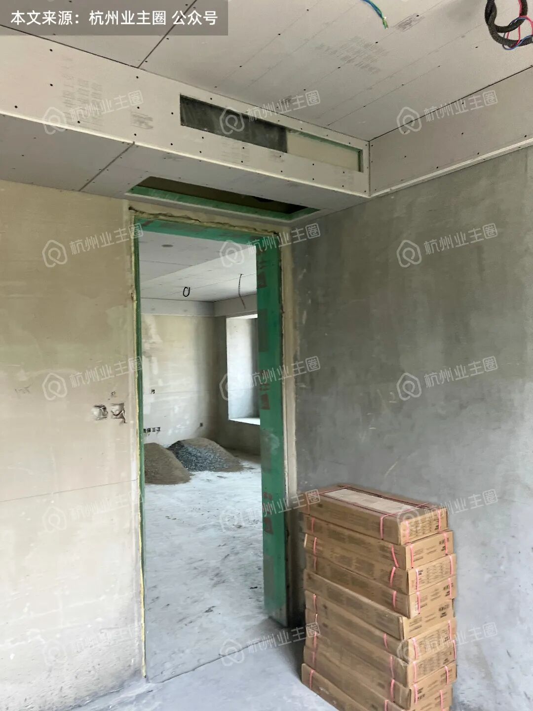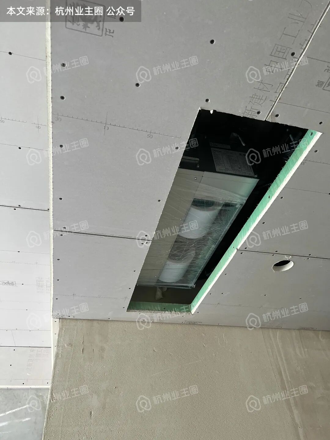 客餐厅、卧室区域顶面石膏板已搭建;