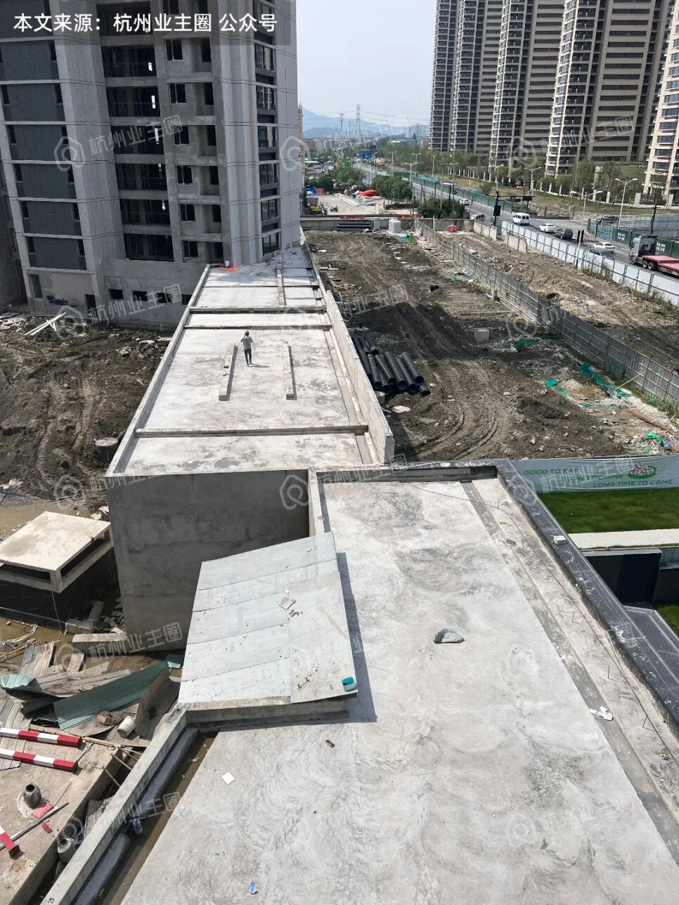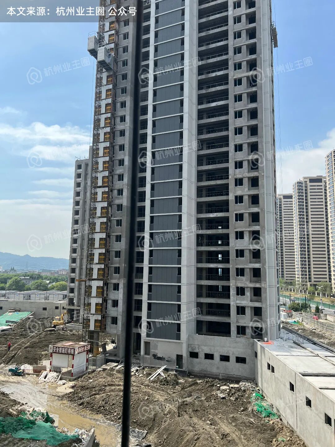 1、整体:建筑立面正在施工中,各楼幢侧面施工已施工过大半,目前未见明显不平整情况。