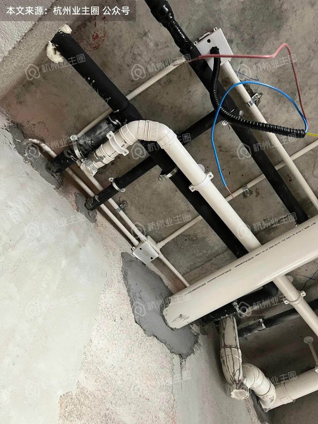 水电预埋已完毕,且水管都已做保温处理、弱电走桥架;
