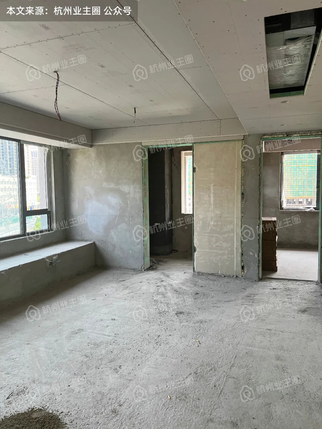 地面、墙面已初步找平,但目前为毛坯状态;