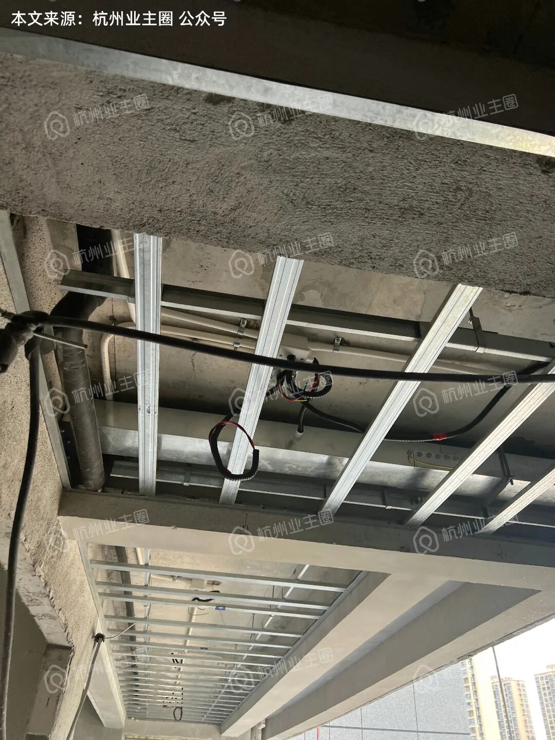 顶面轻钢龙骨已架设完成;