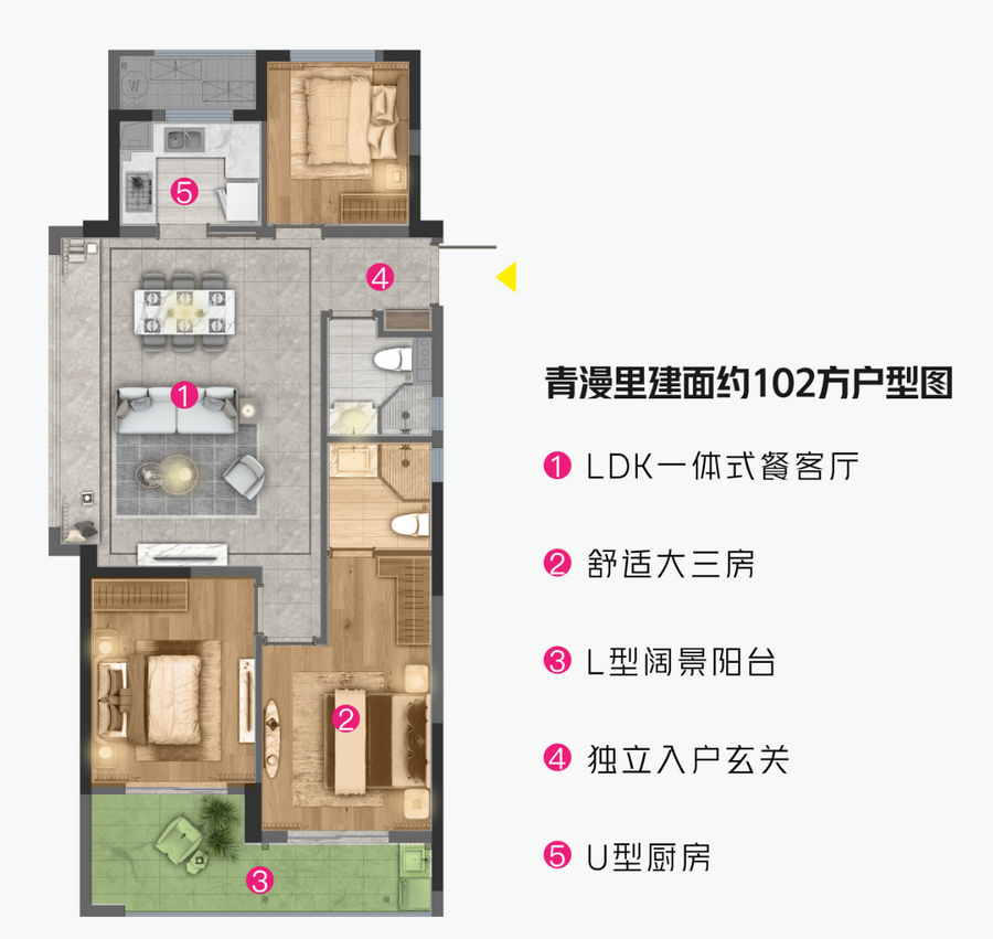 1、本文采集资料为102㎡户型,94㎡户型独家谍照可添加圈姐微信(hzyzq003)获取。